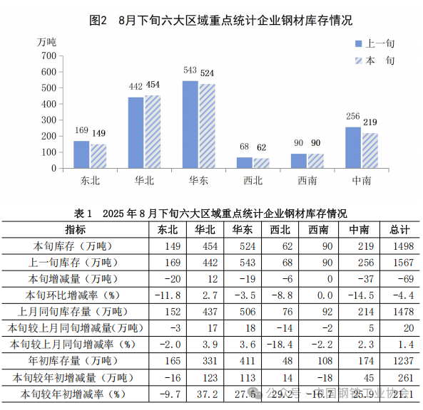 8月下旬重點統(tǒng)計企業(yè)鋼材庫存旬報