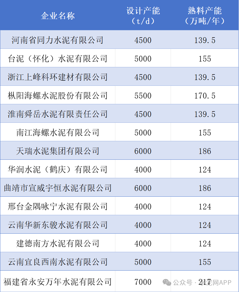 據(jù)統(tǒng)計(jì),今年以來(lái),已有14條水泥熟料生產(chǎn)線建設(shè)項(xiàng)目不再推進(jìn),合計(jì)年產(chǎn)能2139萬(wàn)噸(按照310天計(jì)算),詳情見(jiàn)下表: