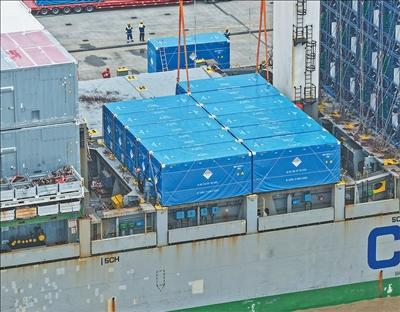 3月22日,46個國產(chǎn)儲能柜吊裝至利比里亞籍“克拉舍夫斯基”輪,這標志著上海南港碼頭儲能柜出口業(yè)務正式落地運營。本次出口的儲能柜單體體積等同于標準集裝箱,單臺重量達43噸。這批儲能柜將與變電散熱器、風力發(fā)電機組、風力發(fā)電機葉片等總計717件各類裝備、物資一同搭載該輪,出口至歐洲市場。