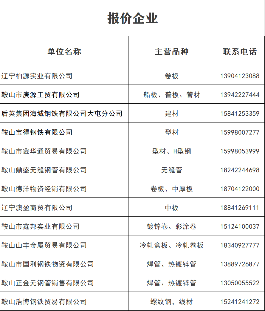 4月9日 鞍山地區(qū)鋼材價格表