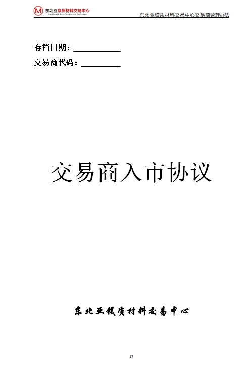 (四)按照《東北亞鎂質(zhì)材料交易中心入市協(xié)議》的規(guī)定向交易中心繳納相關費用;